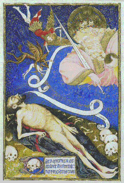 Rohan Hours Copied after 15th Century French Manuscript Hand ground gouache, 22k gold leaf, 23¾k shell gold, on sheepskin parchment 11x 8 ½ " |