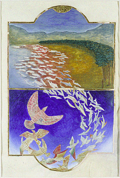 Transfiguration Hand ground gouache, 22k gold leaf on sheepskin parchment 11x8½" |