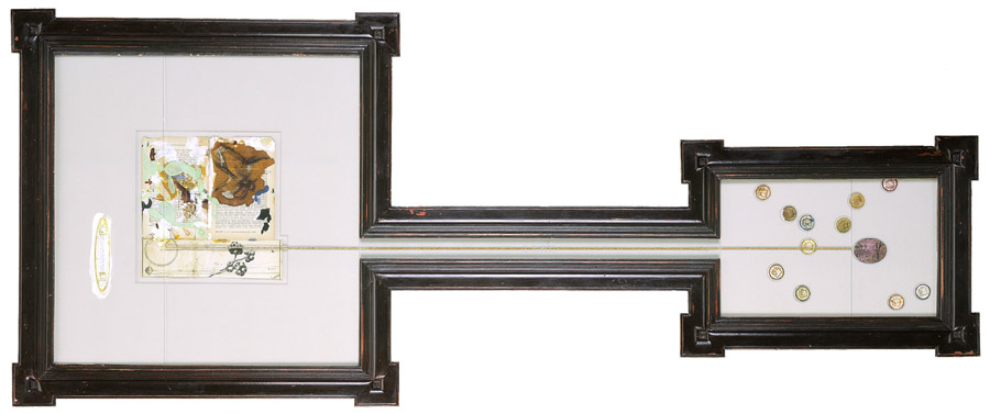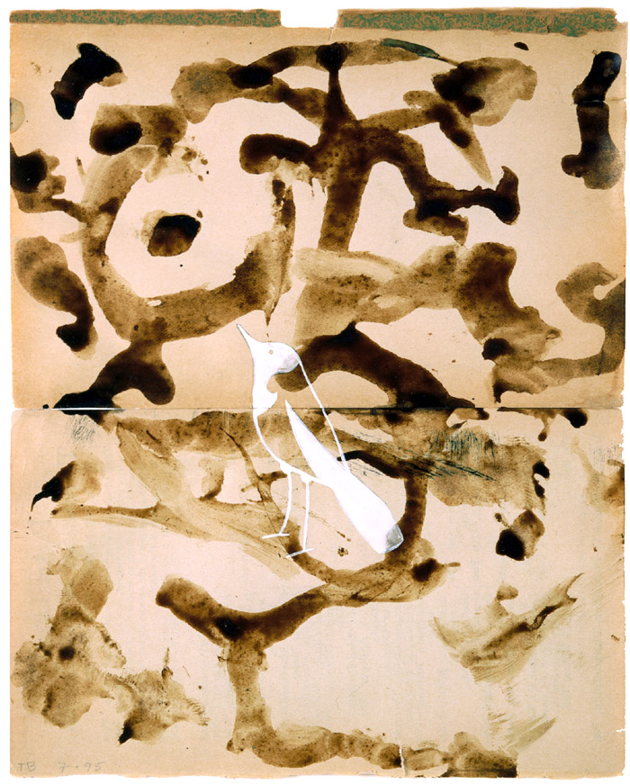 Ink, gesso, acrylic, tempera, saliva, shoe polish, pencil and water color on